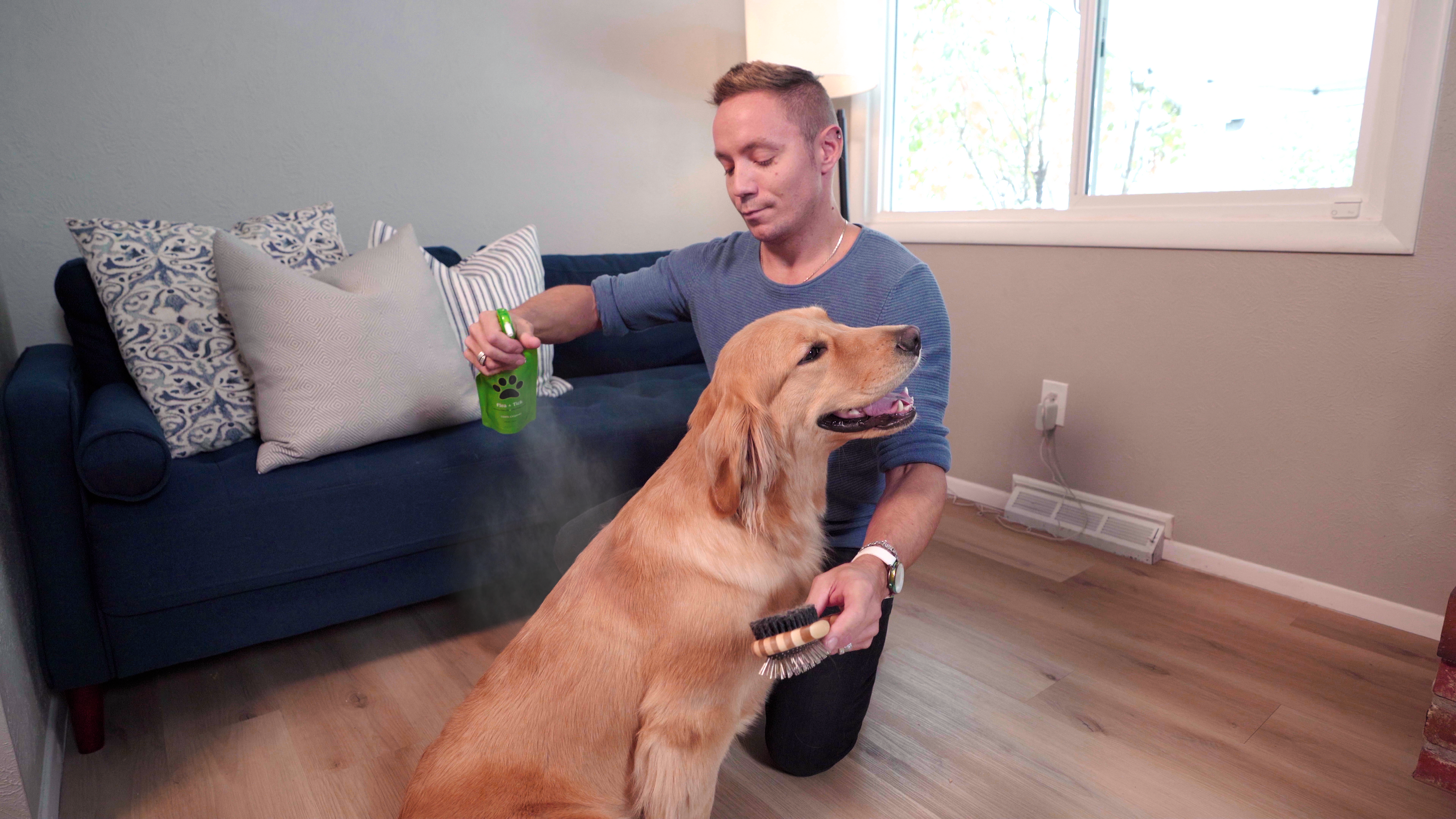 Apply 2-3 sprays onto your dog’s fur from 6 inches away.